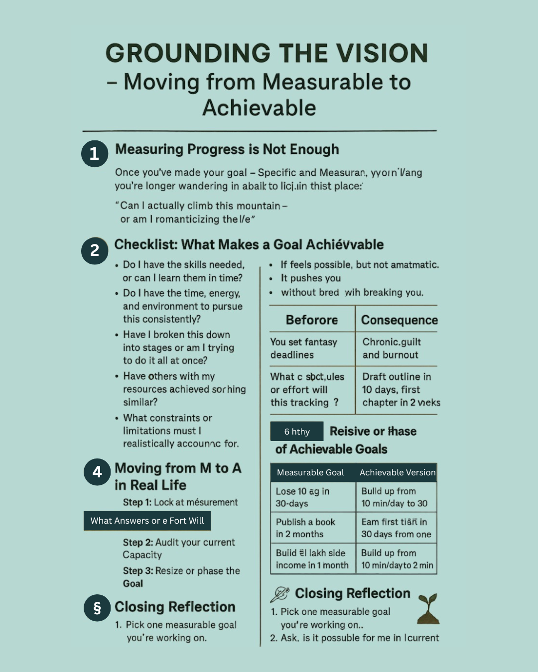 Once you’ve made your goal Specific and Measurable, you’re no longer wandering in a fog. You’ve named the mountain and built a path to climb it.